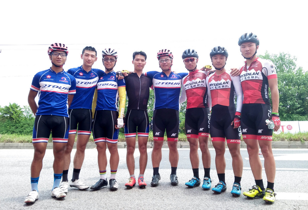 車隊其它成員何家昱、張頠翾穩穩的護送主將葉聰,隨著比賽經驗的積累,QTOUR車隊越來越成熟。張頠翾一直尋找機會突圍,他利用自己的爬坡能力,在一個大橋上坡加速和主集團拉開差距,創造機會。不過主集團速度很快,在終點前1公里張頠翾被追回。最后大集團中的葉聰和何家昱發起最后沖刺,何家昱耗盡自己最后一點體能,把主將葉聰帶到了最佳位置,在高手如林的陣容中,最后葉聰沖刺獲得第八名的好成績。來看看其他對手,崔尹浩,石勇明等,都是業余車壇的頂尖高手。